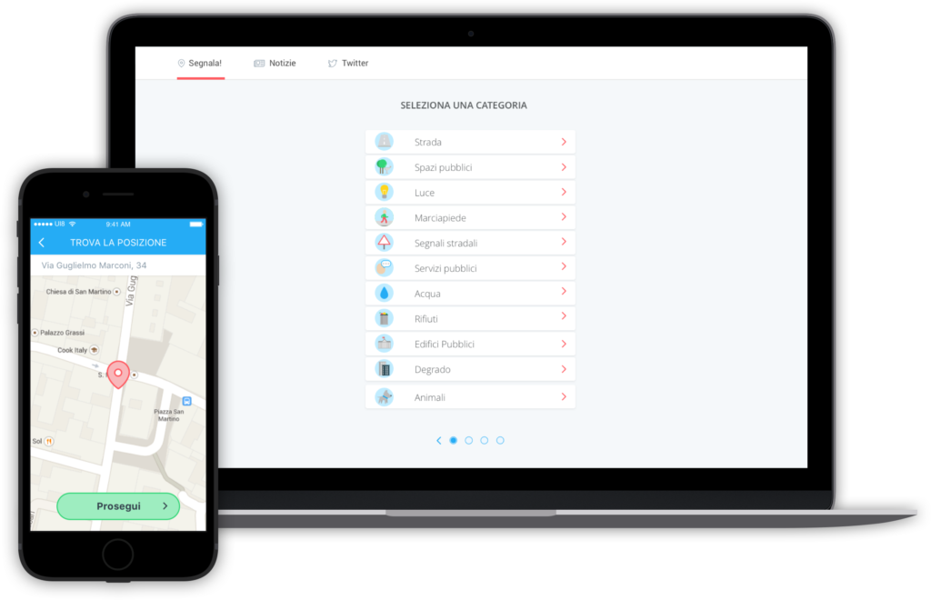 Questo strumento funziona con smartphone, tablet o computer di casa, con la possibilità di geolocalizzazione e invio di foto, per aiutare l’Amministrazione e gli Uffici a individuare e risolvere il problema. In seguito, si riceveranno aggiornamenti sull’avanzamento della presa in carico.