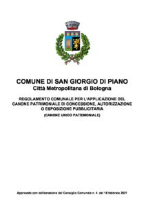 Comune di San Giorgio di Piano > Regolamento comunale per l’applicazione del Canone patrimoniale di concessione, autorizzazione o esposizione pubblicitaria (Canone unico patrimoniale)
